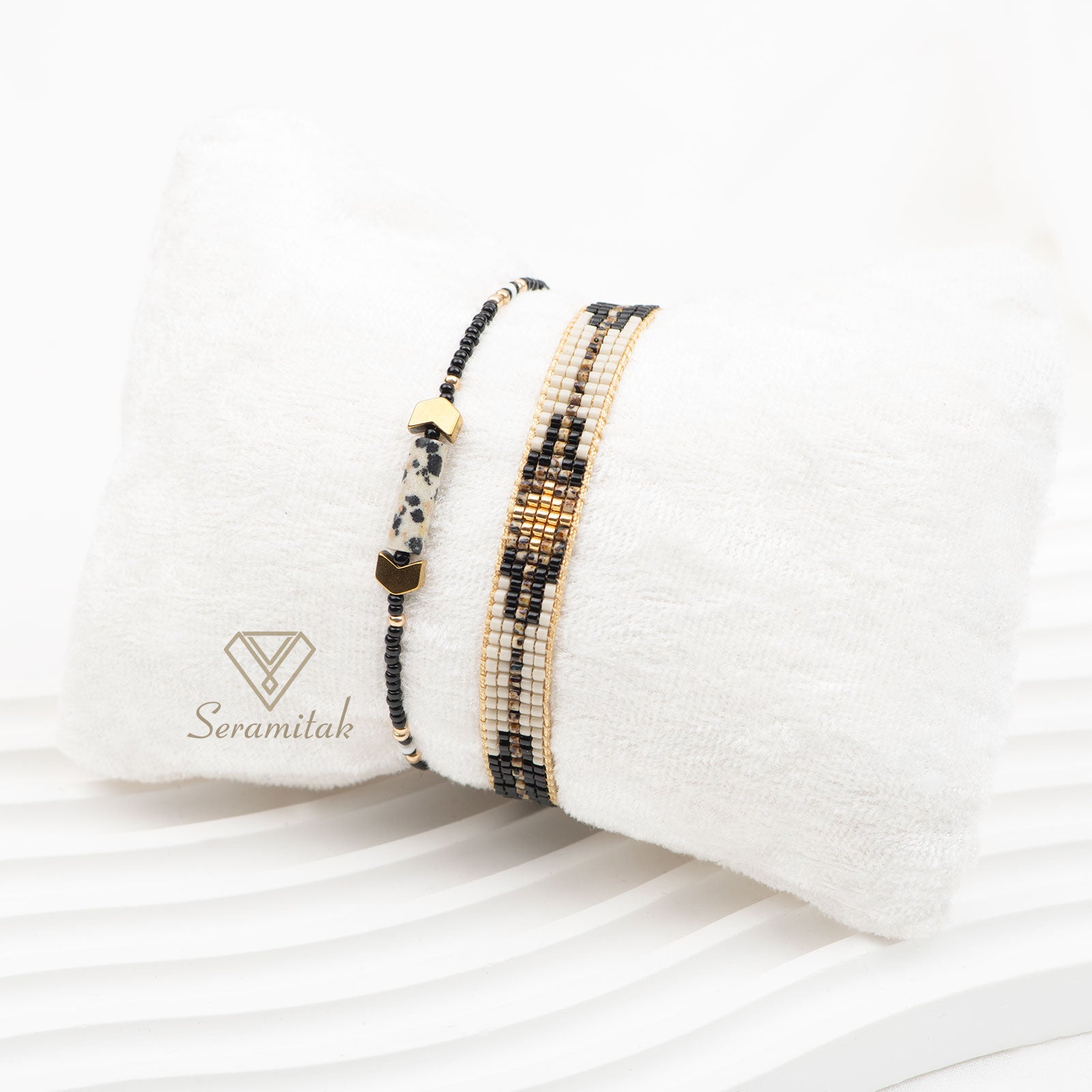 ◆ Bakım Talimatları: Miyuki boncuk ve iplerinin yapısı gereği, takınızı kimyasal maddelere, sert darbelere ve çok yüksek ısıya maruz bırakmamanız önerilir. Özellikle yemek yaparken takıyı elinizden çıkarmanız tavsiye edilir.