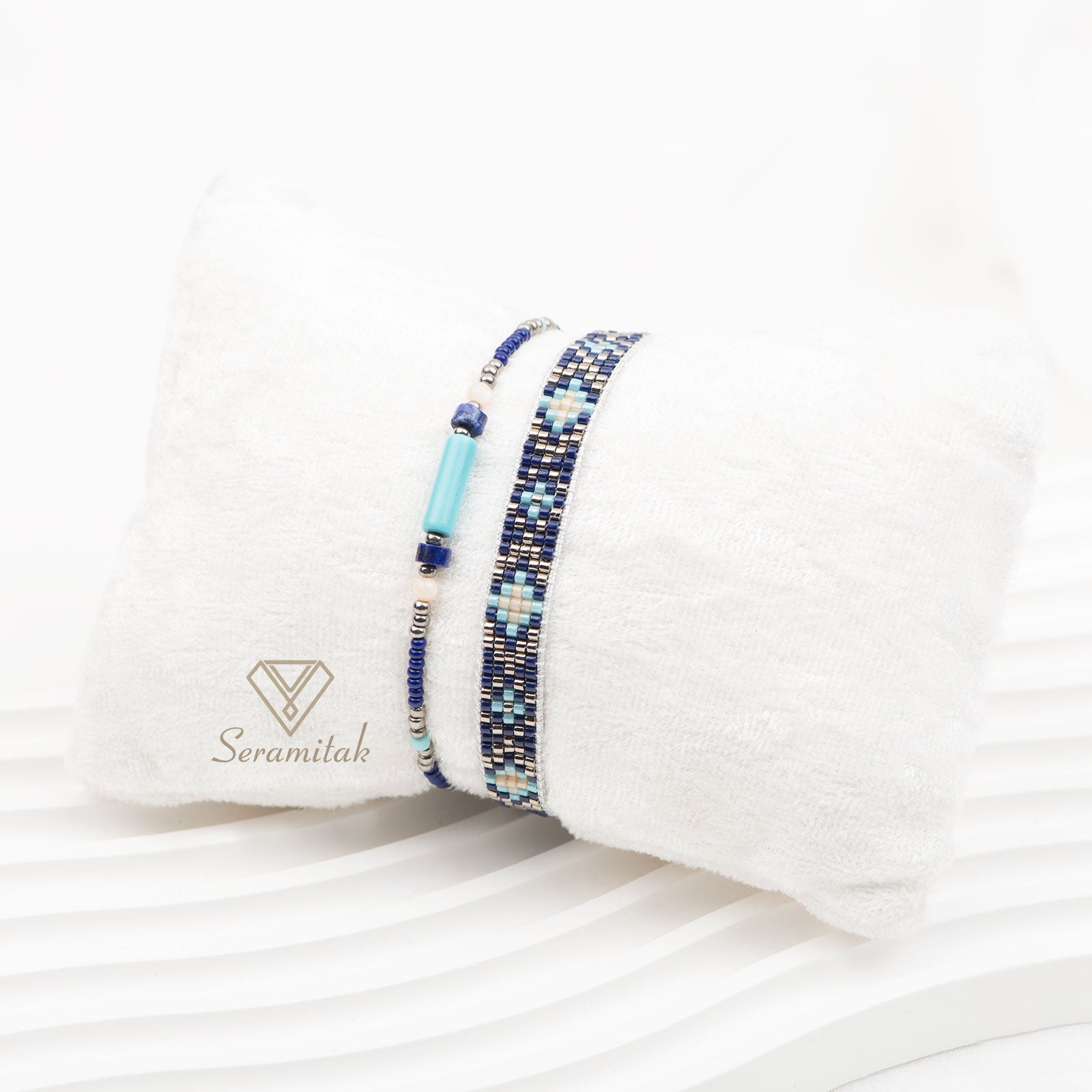◆ Bakım Talimatları: Miyuki boncuk ve iplerinin yapısı gereği, takınızı kimyasal maddelere, sert darbelere ve çok yüksek ısıya maruz bırakmamanız önerilir. Özellikle yemek yaparken takıyı elinizden çıkarmanız tavsiye edilir.