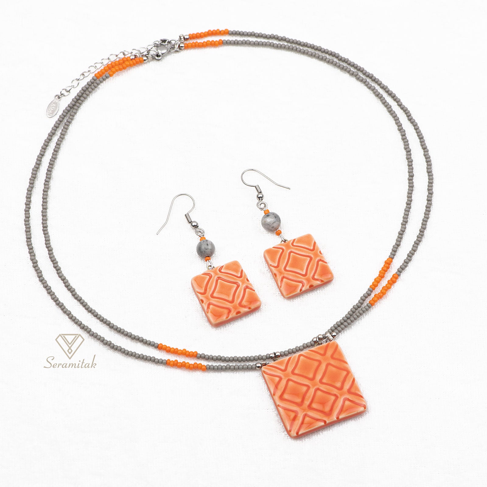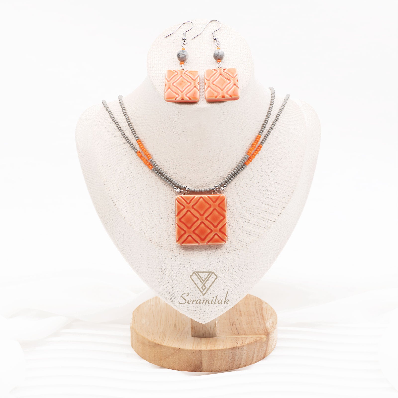Nexa – Seramik Kolye & Küpe Seti | Turuncu
