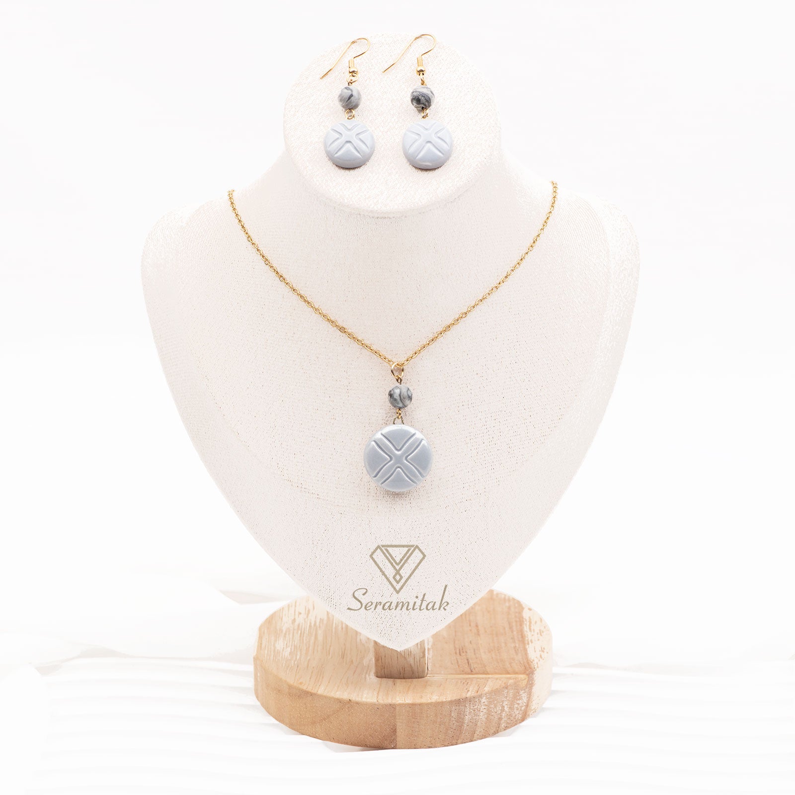 ◆ Seramik Parça: Kolye ~19 mm , Küpe ~14 mm