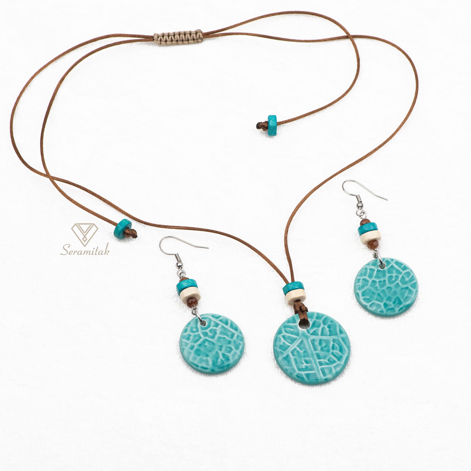 ◆ Seramik Parça: Kolye ~28 mm , Küpe ~24 mm