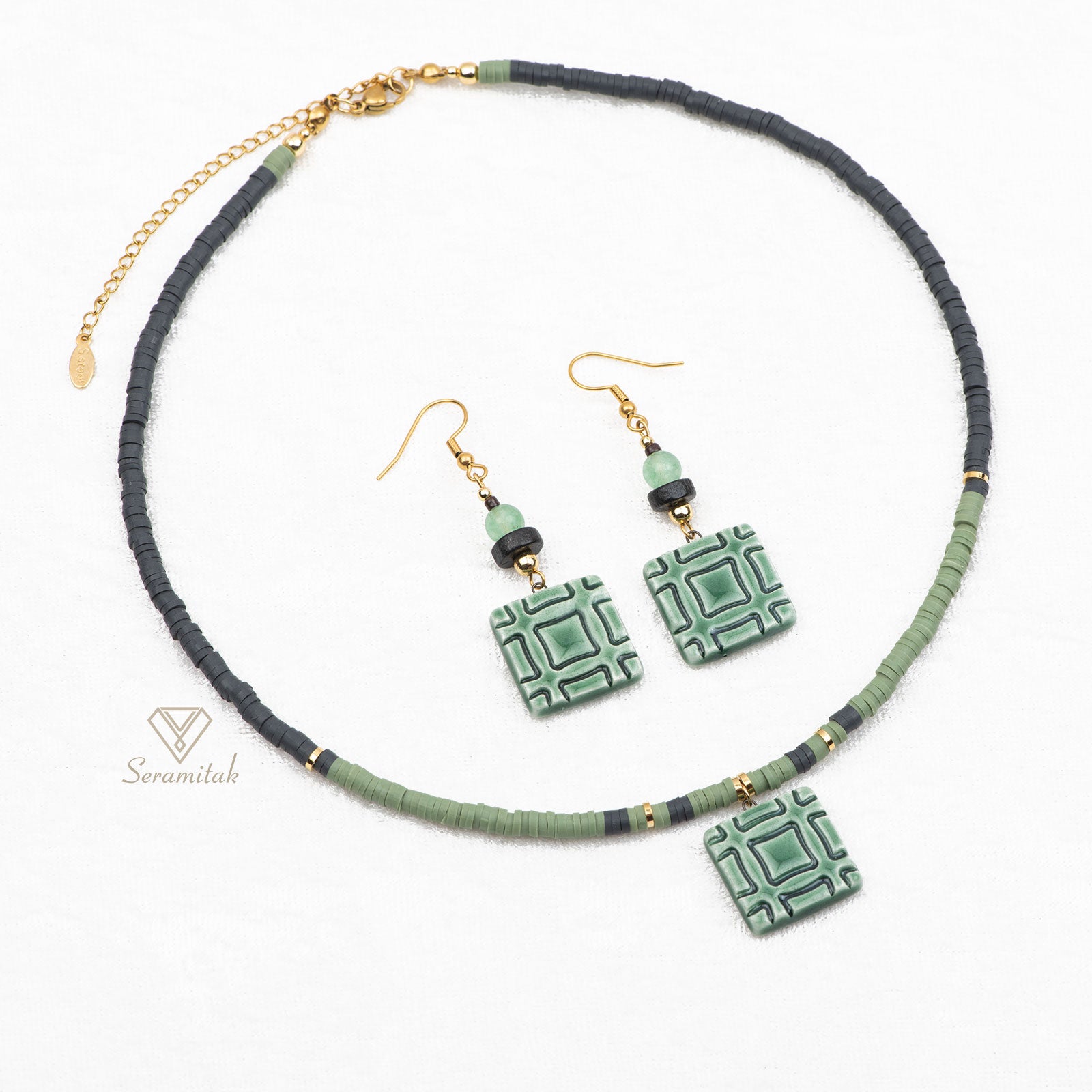 Yeşil Denge – Seramik Kolye & Küpe Seti